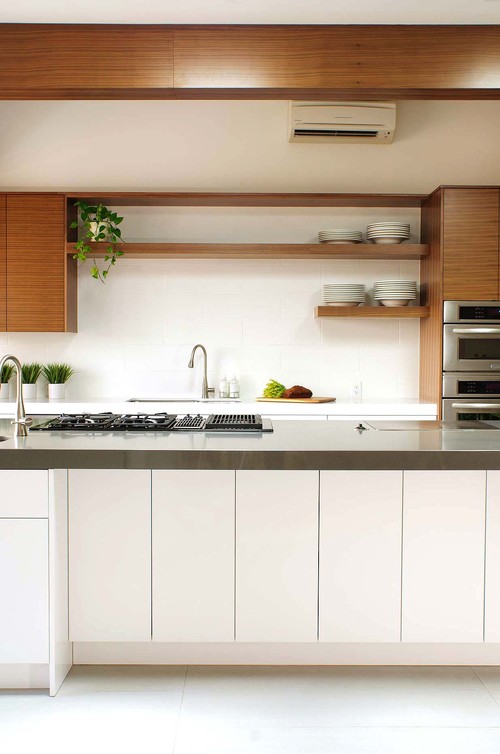 Open timber shelves will not only add more storage space to the kitchen, it will add a homely vibe. Cookbooks, herb pots and utensils can be on display for easy reach and use, in the kitchen. Timber cutting boards will be layered in the kitchen to add texture and a simple focal point on the bench. Herbs and plants that are vine-like will add greenery to the kitchen, giving it an instant fresh update.
